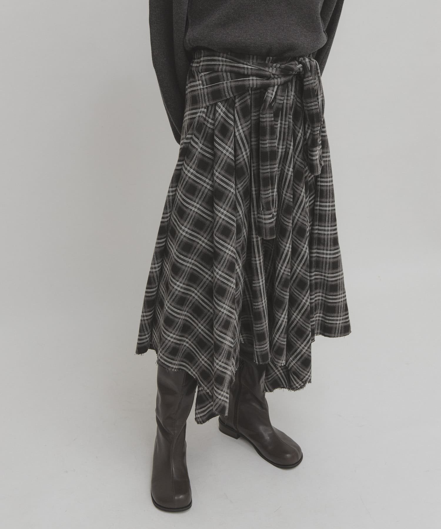 このスカート、シャツを巻いてる風のデザインですごくかわいかったです!パンツに重ね着しても良いし、1枚でも長すぎなくて低身長にぴったりな丈感。