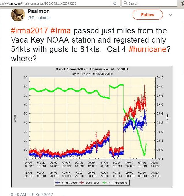 ところが、嵐が最も近づいた瞬間にタンパの気象台で計測されたのは風速19マイル(約30㎞)でした。
