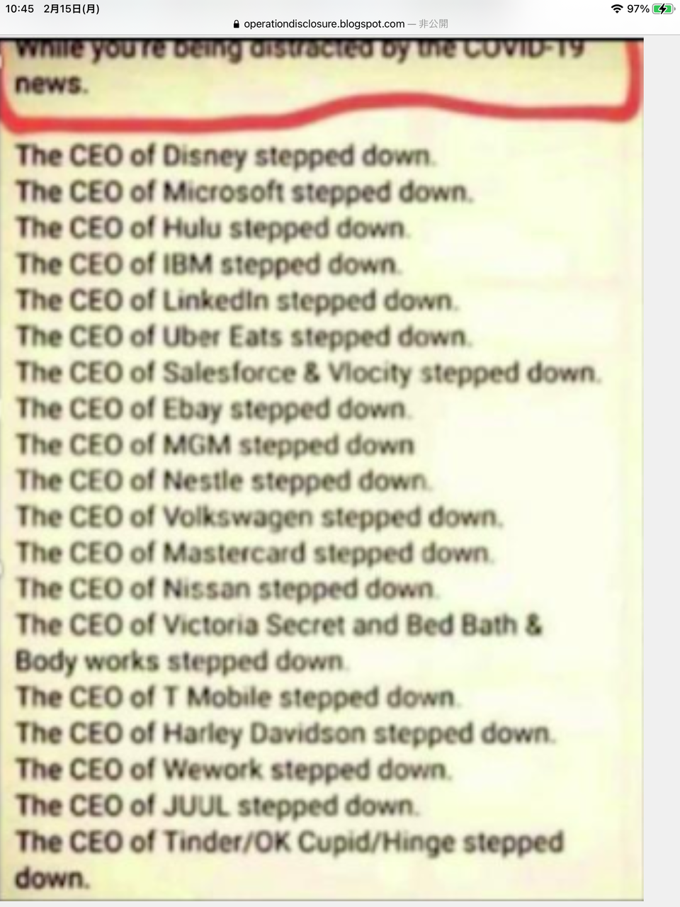 「貴方がコロナウイルス19ニュースで注意をはぐらかされているうちに以下の社長(CEO)が辞任しています。