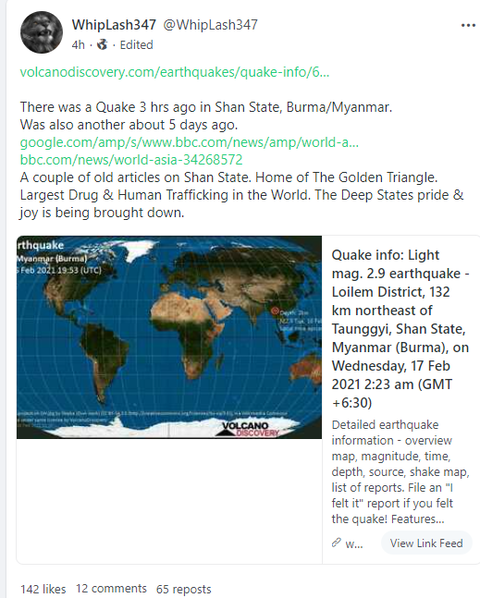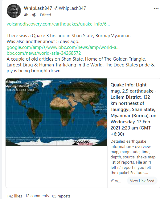 3時間前にビルマ/ミャンマーのシン州で地震がありました。