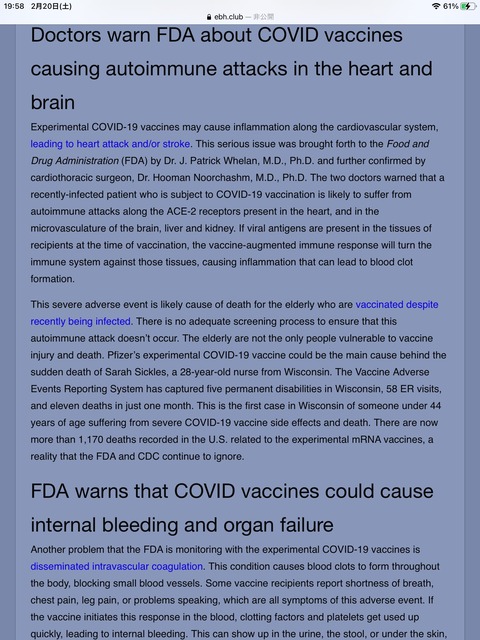 FDAは、COVIDワクチンが内出血や臓器不全を引き起こす可能性があると警告しています