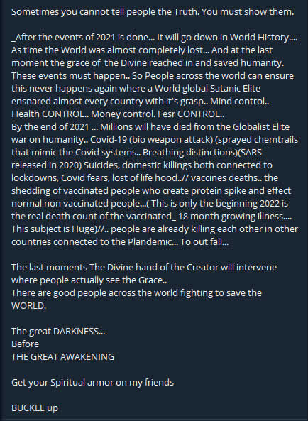 2021年の終わりまでに...人類に対するグローバリストエリート戦争で数百万人が死亡するでしょう..Covid-19(バイオ兵器攻撃)(Covidの恐れを模倣するスプレーされたケミトレイル、生命のフードの喪失..//ワクチンによる死亡..ワクチン接種を受けた人々の脱落...(これは2022年の初めに過ぎません。ワクチン接種された_18か月の病気の実際の死亡数です...。