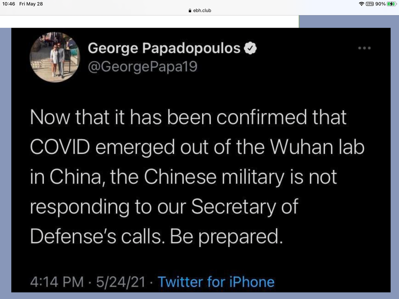 コビッドが中国の武漢研究所から出てきたことが確認された今、中国軍は国防長官の呼びかけに応じていない。 準備して。