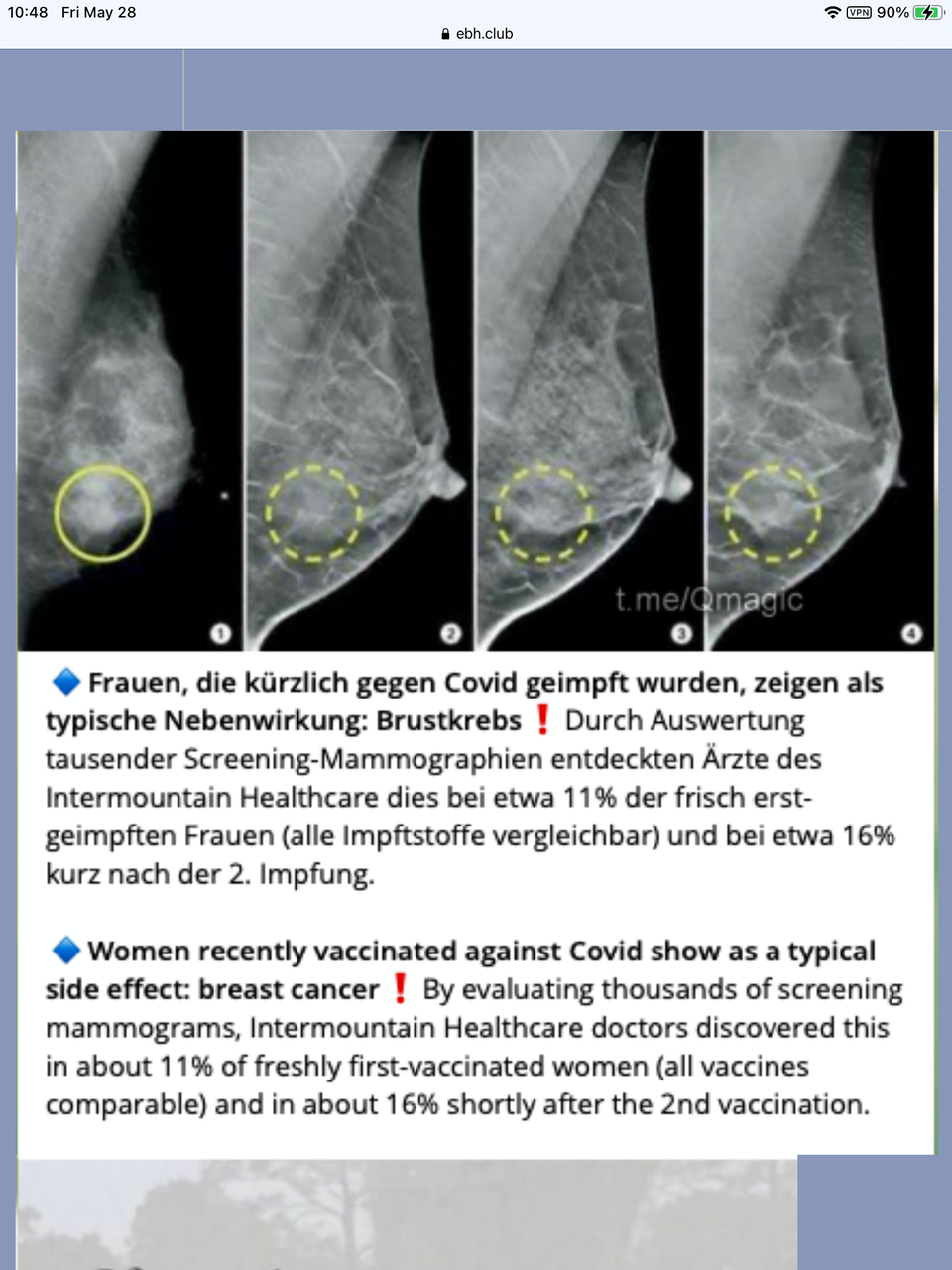 最近、Covidに対してワクチン接種を受けた女性達は、典型的な副作用として乳がんを示しています。 マモグラムのスクリーニング数千人を評価することにより、インターマウンテイン(Intermountain)医療の医師はすぐに2回目ワクチン接種後(すべてのワクチンが同等)と約16%最初のワクチン接種をしたばかりの女性の約11%でこれを発見しました。