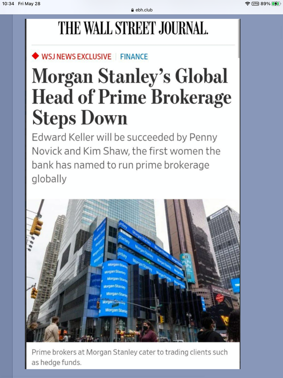 モルガンスタンレーのプライムブローカレッジのグローバルヘッドが辞任