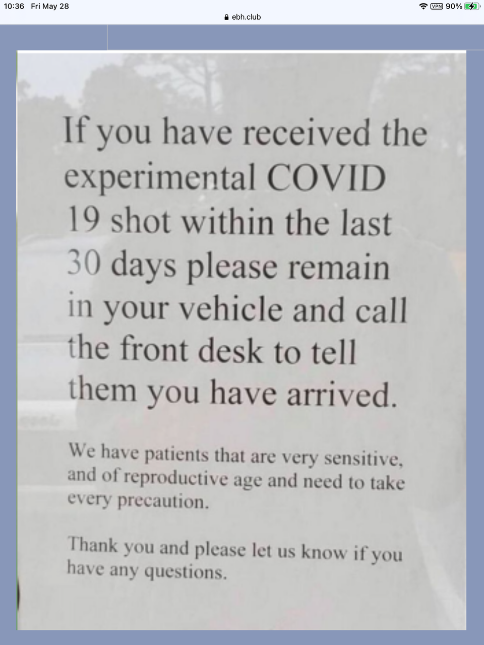 過去30日以内に実験的なCOVID19ショットを受け取った場合は、車内に留まり、フロントデスクに電話して到着したことを伝えてください。