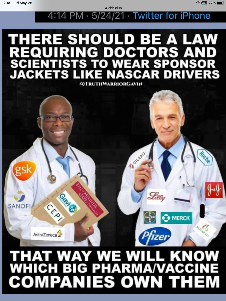 医師や科学者にナスカードライバーのようなスポンサージャケットの着用を義務付ける法律があるはずです