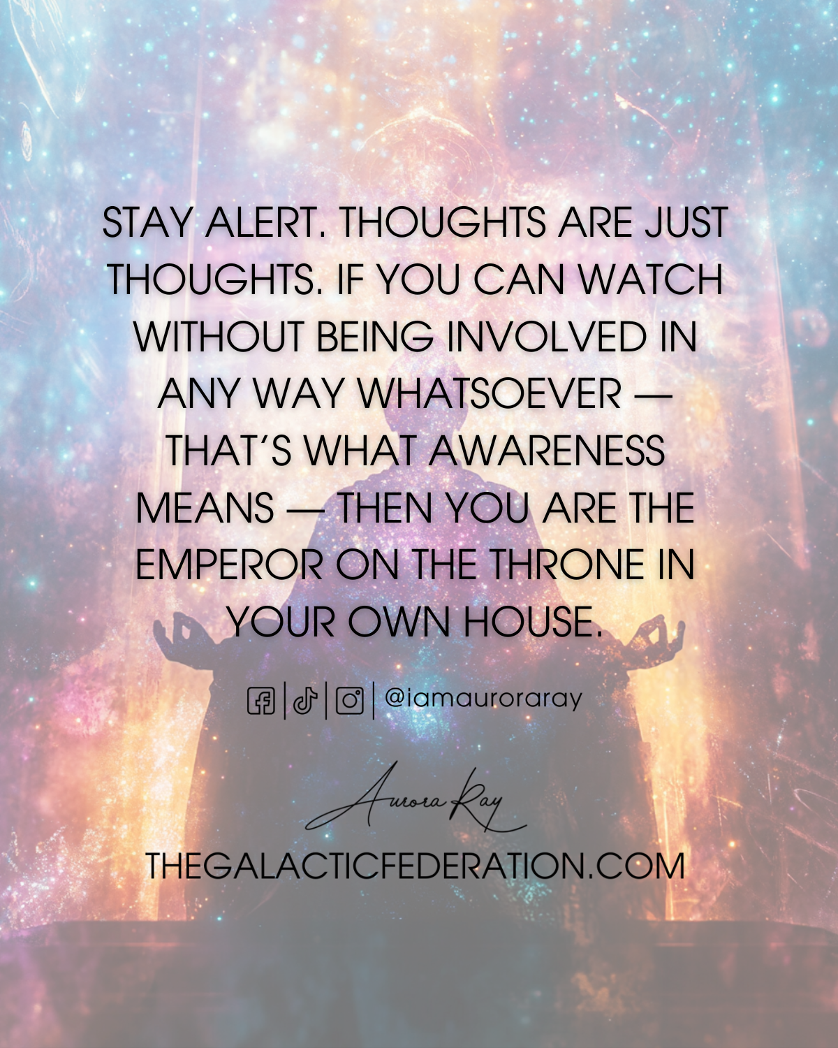油断しないでください。考えは単なる考えです。それに執着しないでください。それが来ては去っていくのを見てください。自分自身がそれに反応するのを観察してください。あなたはあなたの思考ではない、思考はあなたではないということを覚えておいてください。