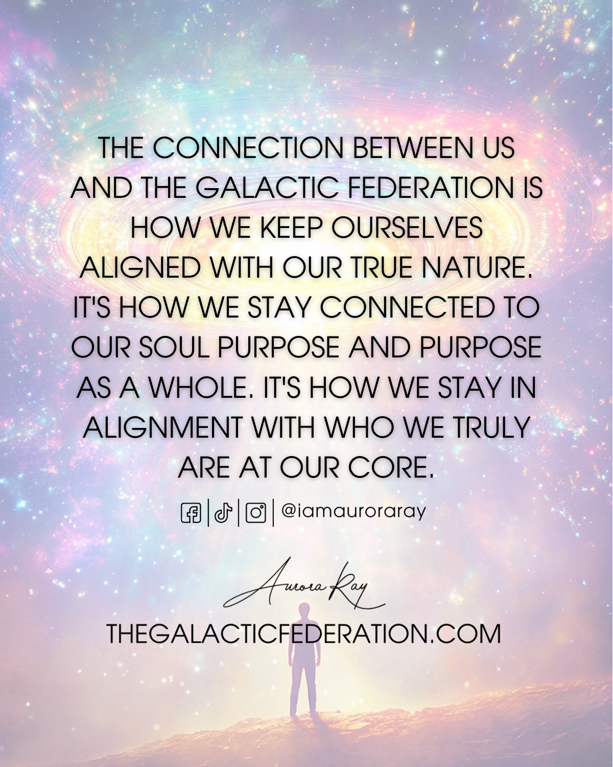 銀河連合と私たちの繋がりは、私たちがいかにして真の本質と調和を保ち続けるか、つまり、いかにして魂の目的、そして全体の目的と繋がり続けるか、ということです。それは、私たちが自分の本質と調和し続ける方法です。