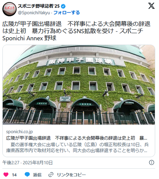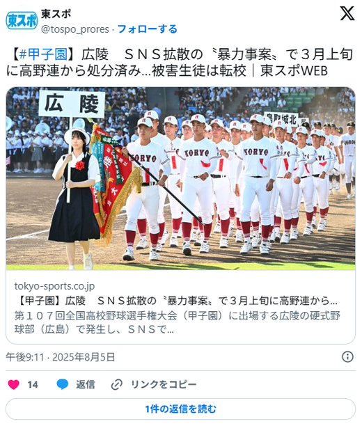 リアル「本題に入りましょう。今回話題になった広陵高校の暴行事件は今年(2025年)1月に複数の野球部員が当時の1年生部員に対して暴力を振るったとのこと。高野連からは3月に厳重注意を受けていたようです」
