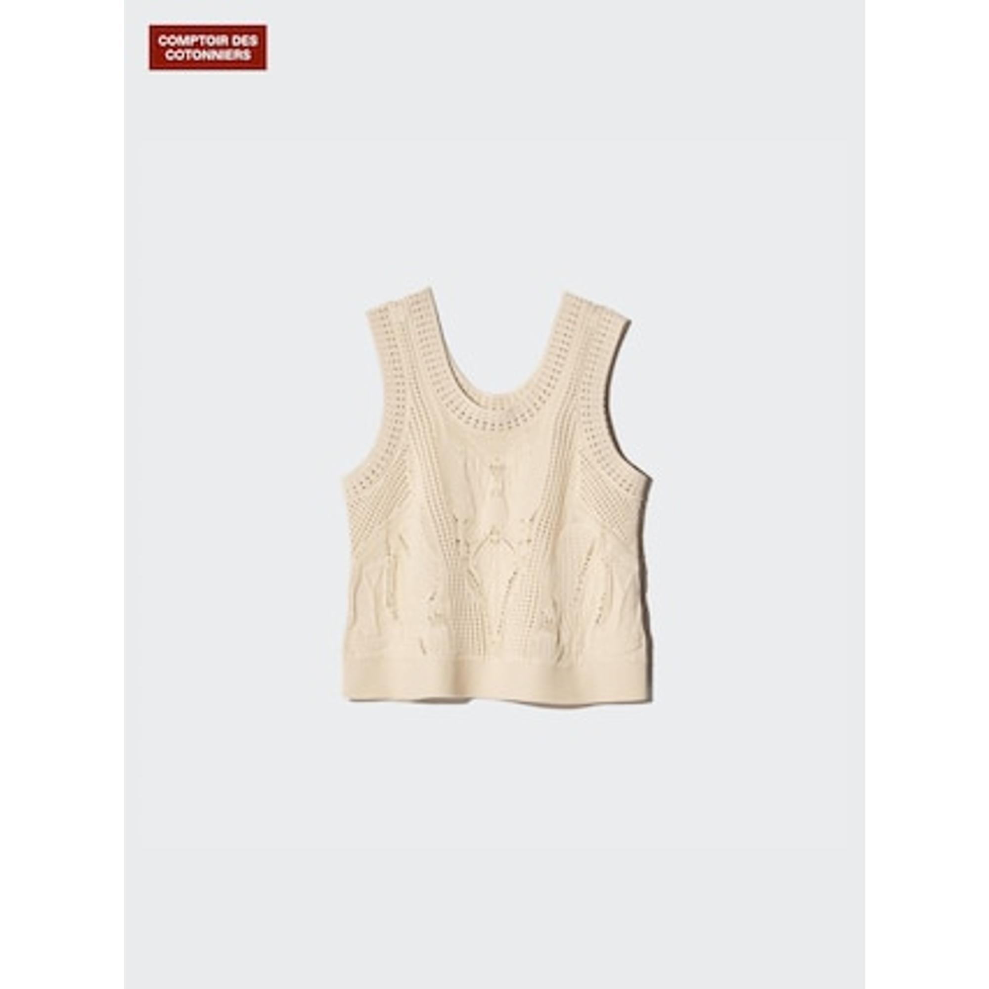ユニクロのクロシェセーターノースリーブは、繊細な編み柄が魅力の上品トップス。