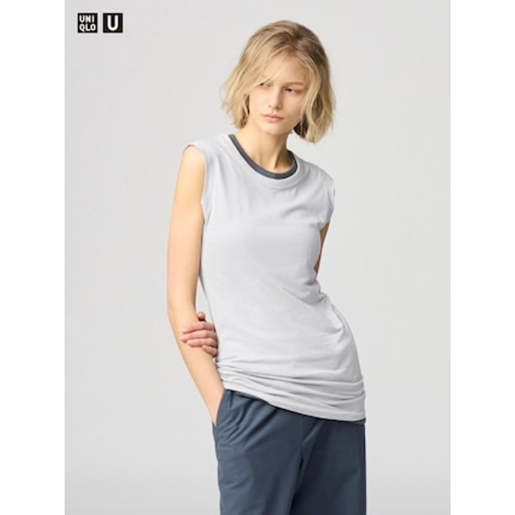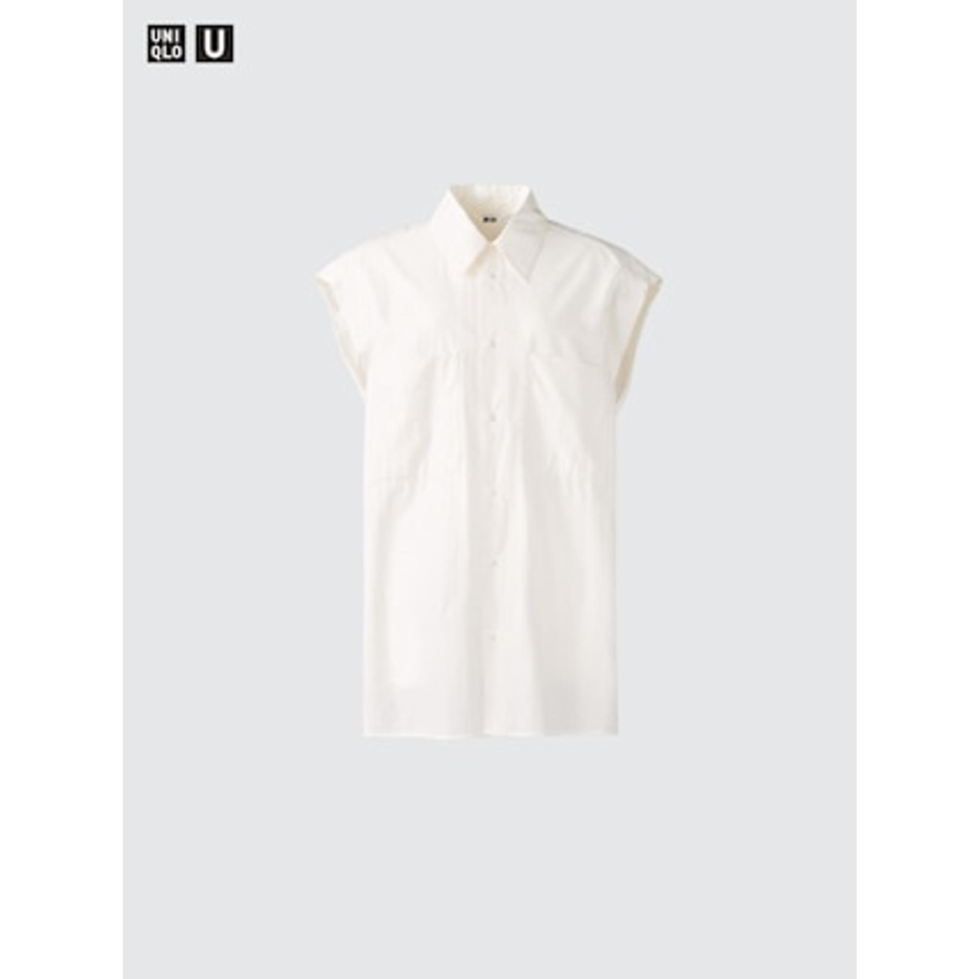 ユニクロのロングシャツ/ノースリーブは、洗練されたシルエットで一枚でさらりと着てもおしゃれに決まる万能アイテム。
