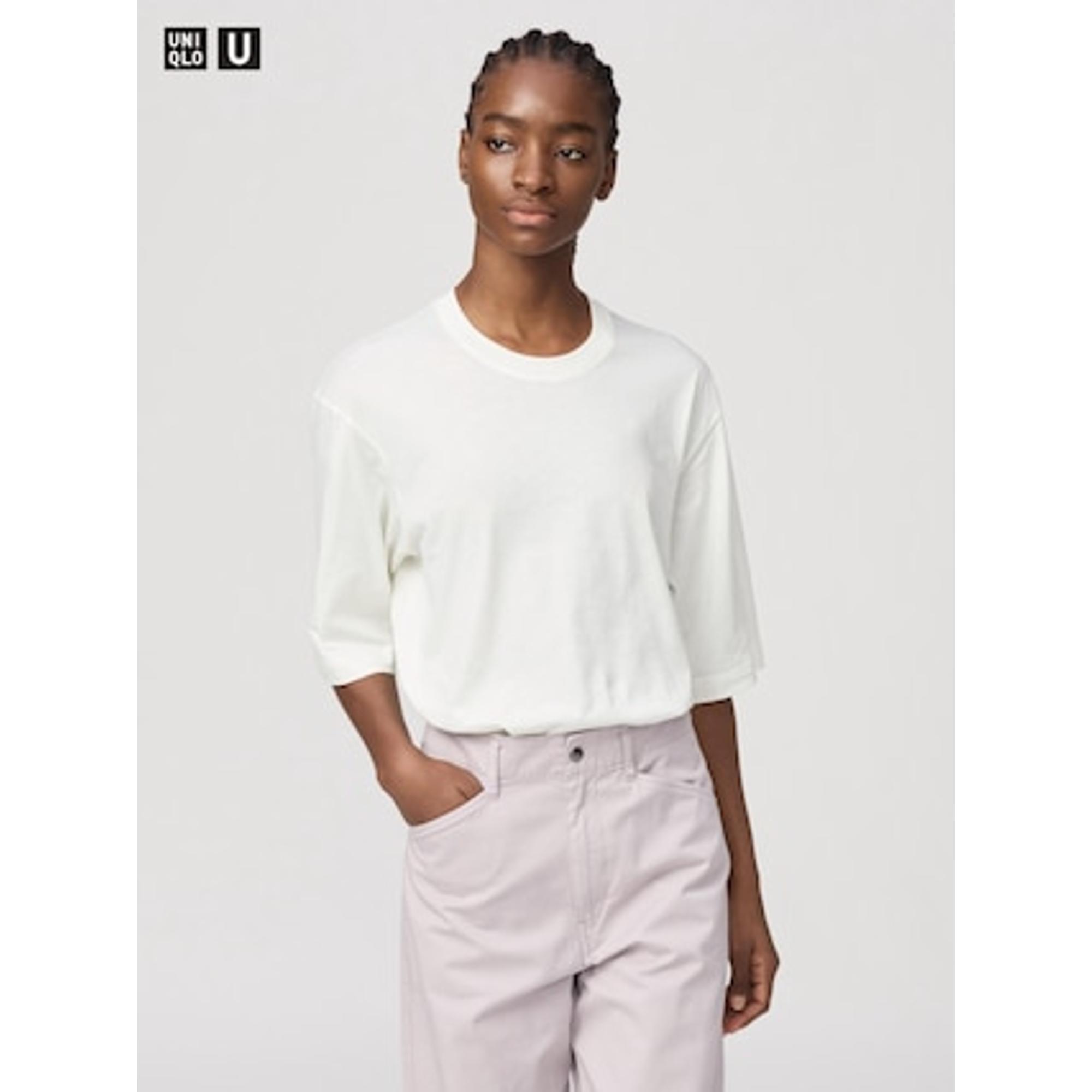 ユニクロのスーピマコットンシアーオーバーサイズTは、上質な光沢感とふんわり透け感が魅力。