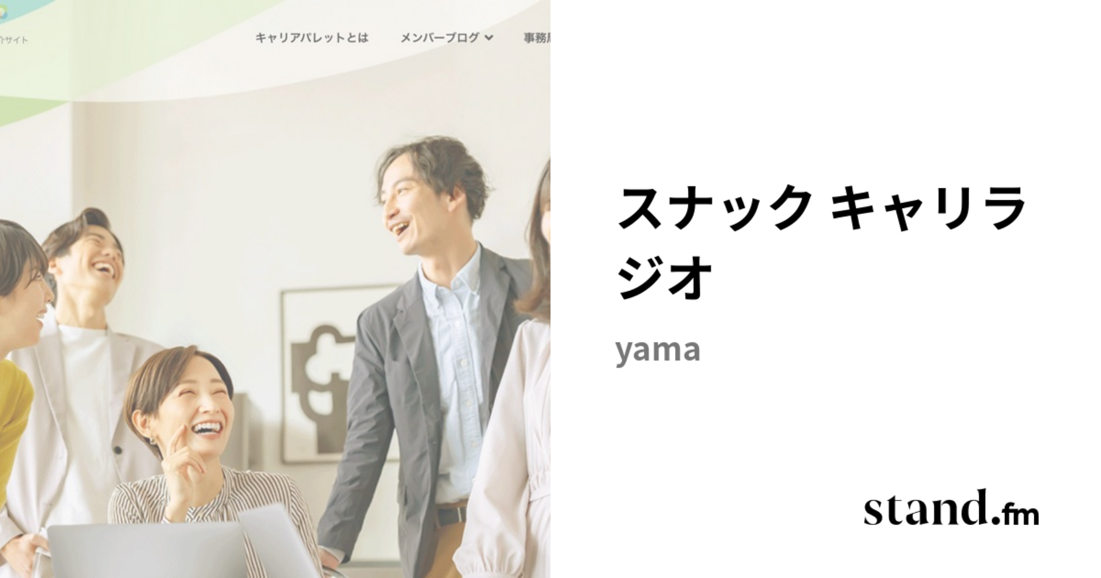 キャリアチェンジを模索しているひとたちの「人」と「なり」に、いまだ少年の夢を追い続けるおしゃベりおじさんことサクライさんと、ちょっとシャイで言葉足らずなヤマと、スパッと天然癒し系のユリちゃんが、ゆるくのんびりとトークを繰り広げます。
