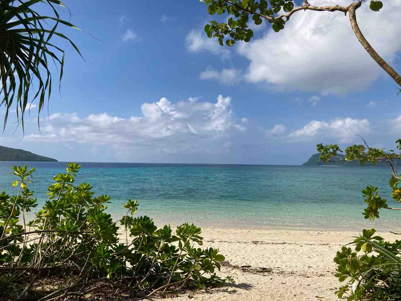 船浮の町から山を越えて行くとビーチに辿り着きます。『イダの浜』。左右に岩場のある綺麗な何もないビーチ。人も日本人は私を含めて5人位。外国人のカップルが3組、日光浴しています。