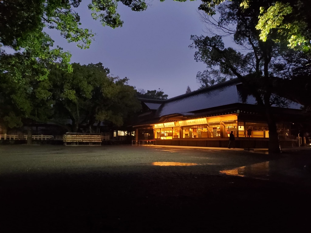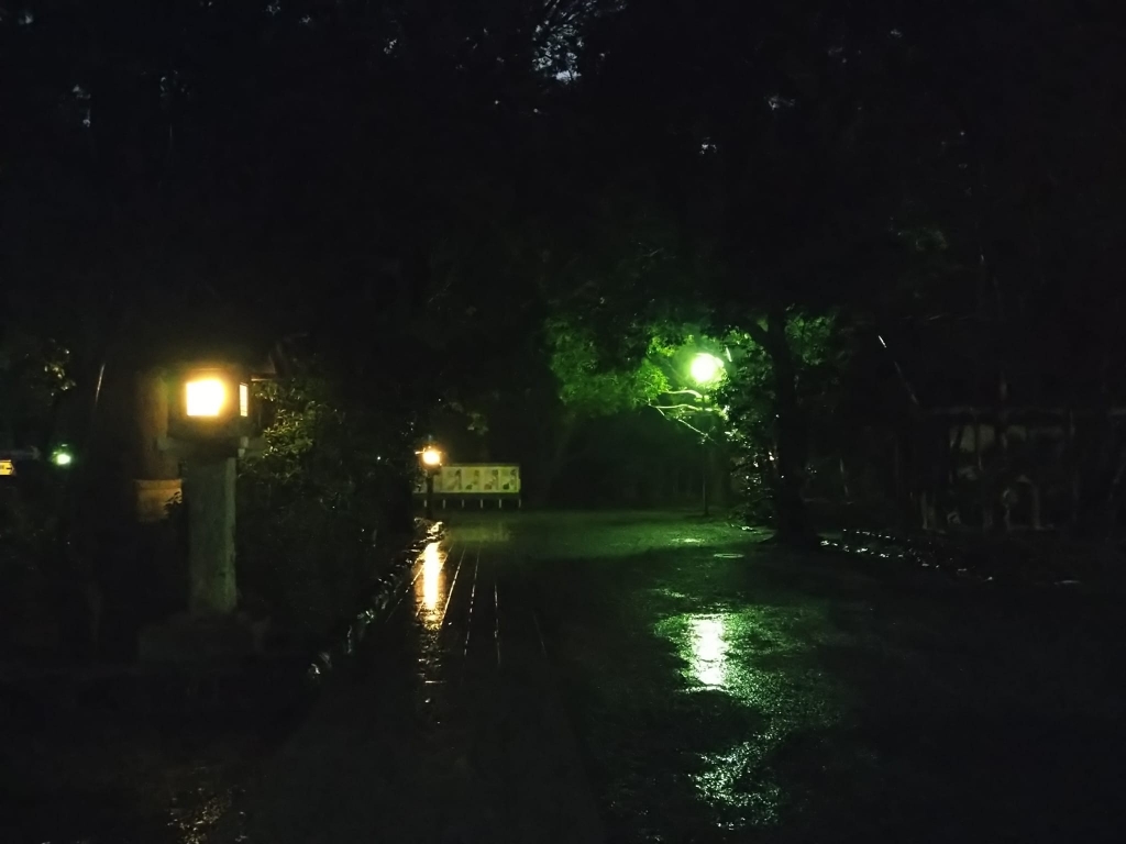 ところどころにある常夜灯と、踏む玉砂利の音。