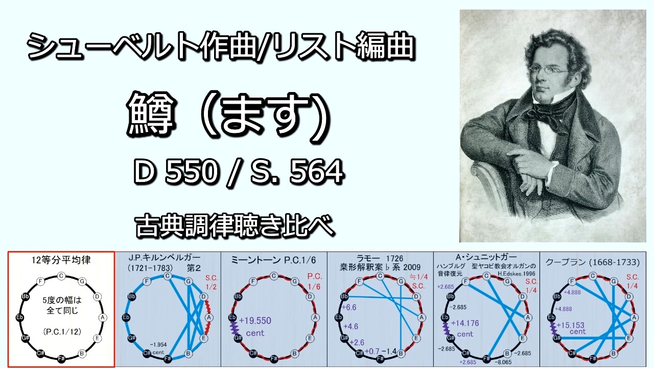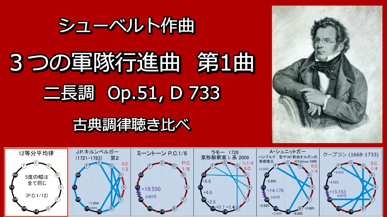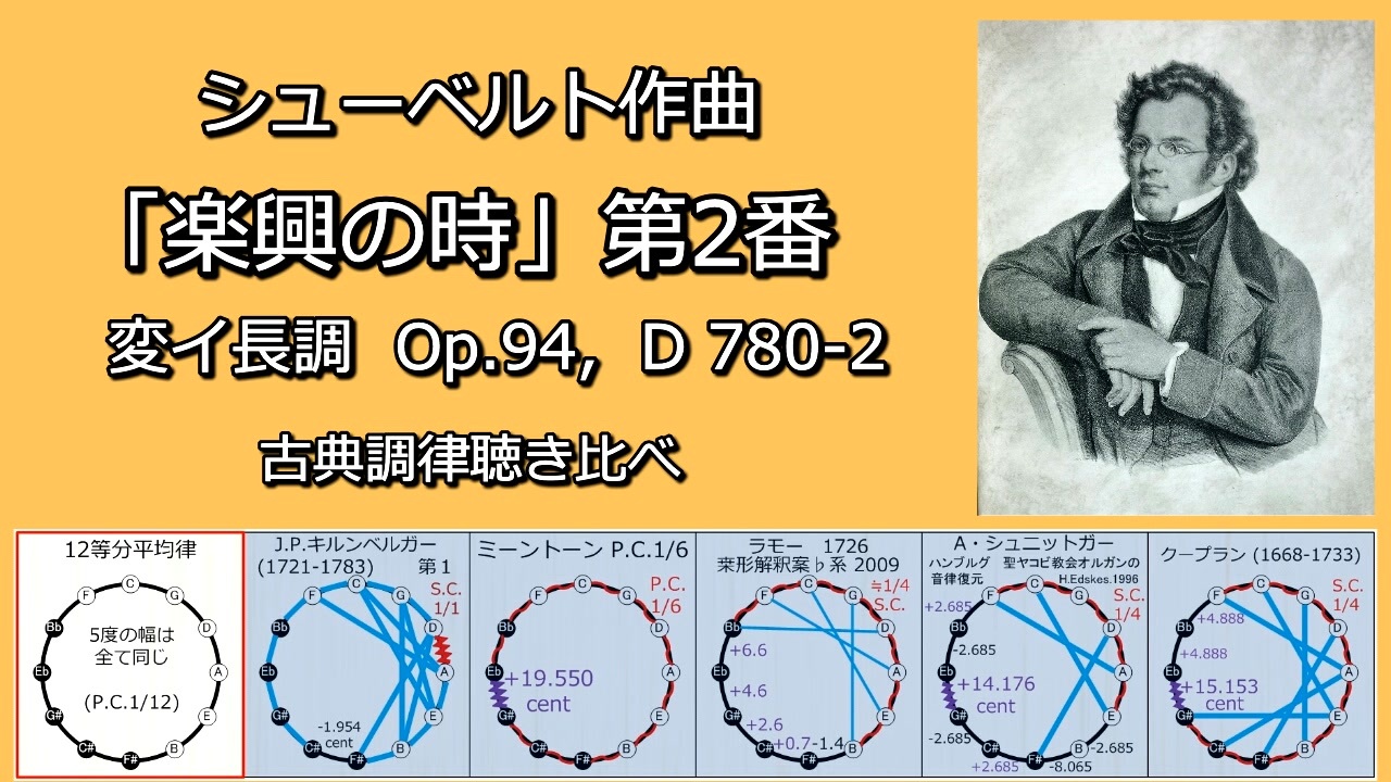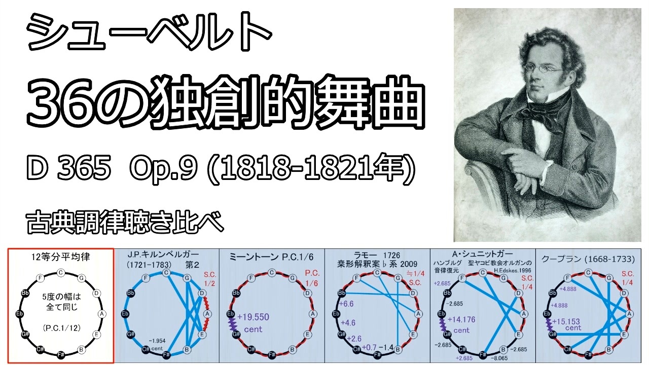 前回に続いて、シューベルト ピアノソナタ第14番の3楽章の聞き比べ動画を纏めました。いつも通りニコ動にUPするつもりだったのですが、UP出来なかったので、デイリーモーションの方にUPしました。ニコ動にUP出来なかった原因は私の環境のせいも考えられ、不明です。デイリーモーションだと、スライダーの位置と6つの音律の図の区切りが一致しないので、ちょっと使いづらいですね。