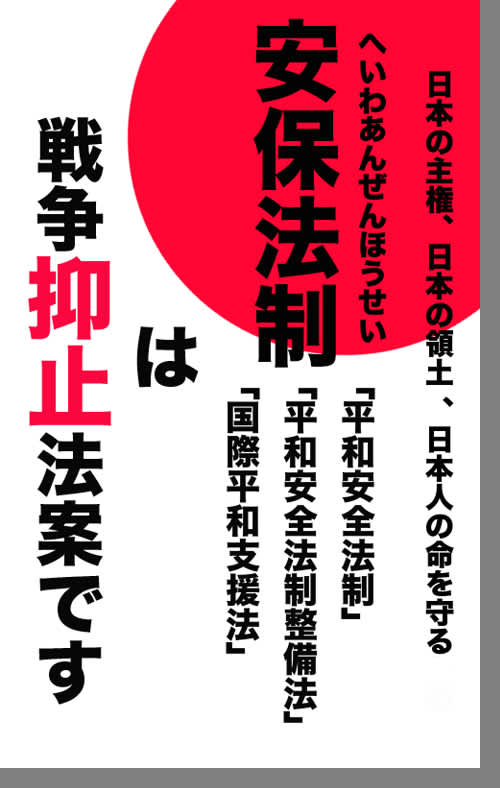安保法制(へいわあんぜんほうせい)「平和安全法制」「平和安全法制整備法」「国際平和支援法」は戦争 抑止 法案です