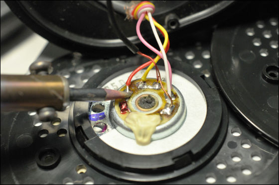 ケーブルの交換に入ります。まずはハンダごてを使い、純正のケーブルを全て取り外します。