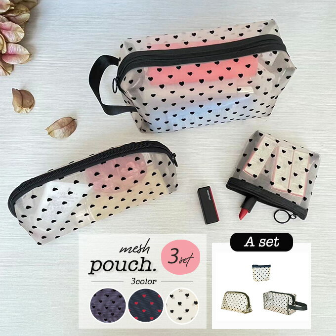 [残りスーパーSALE期間中 40%OFFで1194円 ] メッシュポーチ ハート ポーチ 3点 Bセット ナイロン メッシュ ポーチ コスメポーチ ミニバッグ メイクポーチ 収納ポーチメッシュポーチ 小物 バッグインバッグ コスメ入れ トラベル コスメ コード アクセサリー楽天市場1,990円${EVENT_LABEL_01_TEXT}