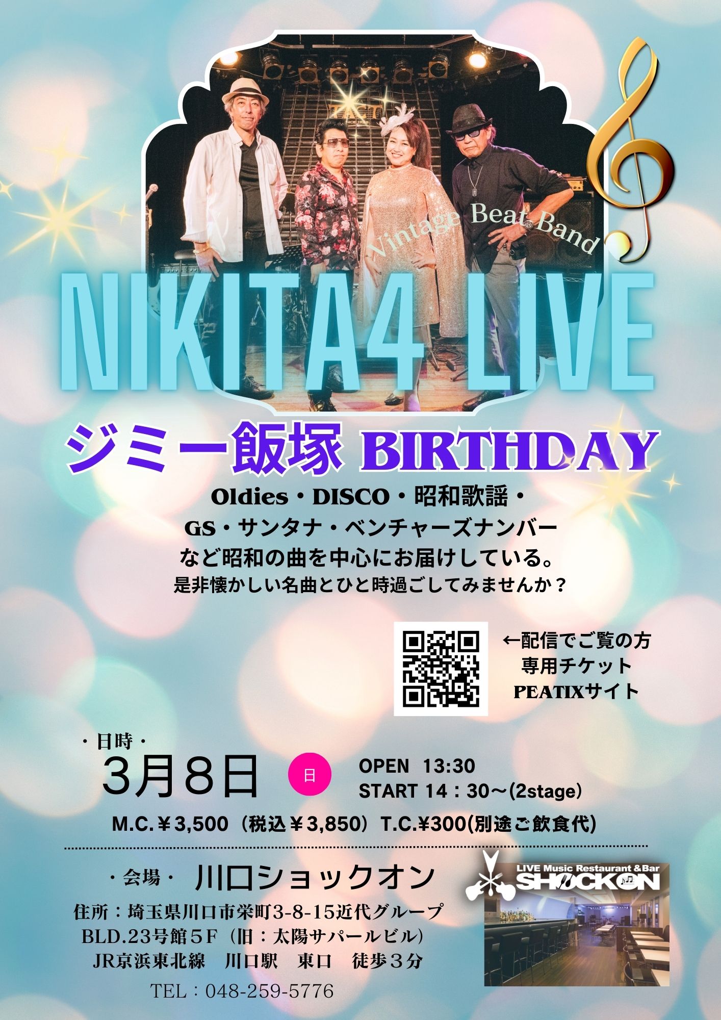 ●4/26日 生演奏ステージ付レッスンライブ ニキータ4 サポート演奏