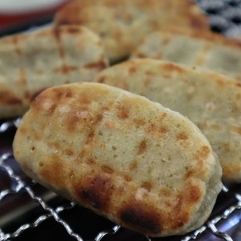 似た様なので名前忘れたのですが、豆が入ってヨモギ? で緑の餅を年に何回か食べます。焼くとモチモチで、揚げるとサクサク。