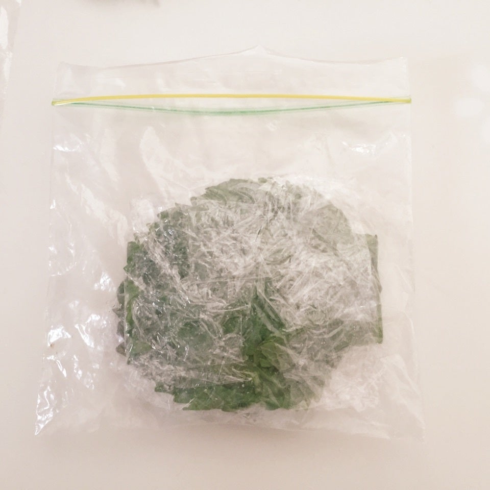 10枚くらい重ねたらラップを閉じて、保存用の袋に入れます。