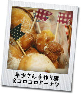 材料混ぜて、揚げて、お砂糖ふりふり。