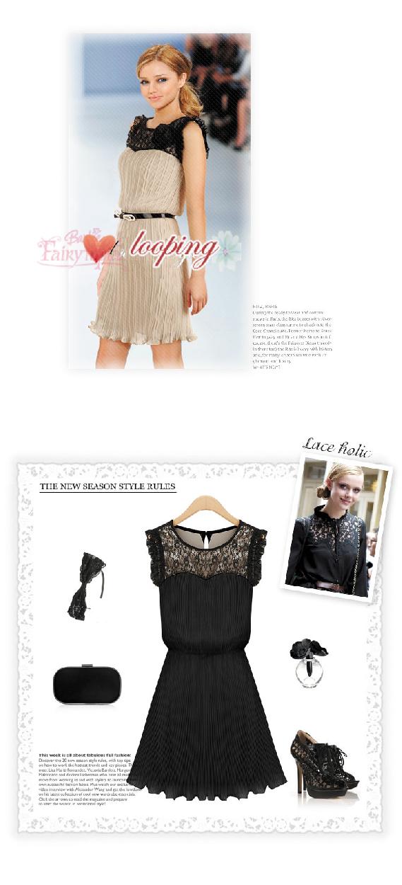 ワンピース 結婚式 ワンピース ルーピング29 フリル レース付き プリーツワンピース