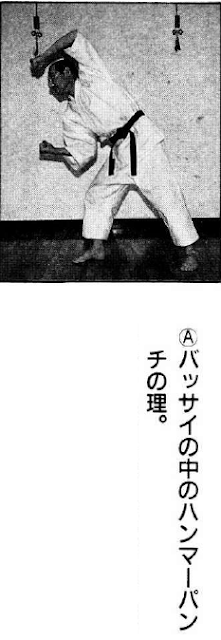 上記動画の突きはバッサイの山突きを応用したハンマーパンチです。