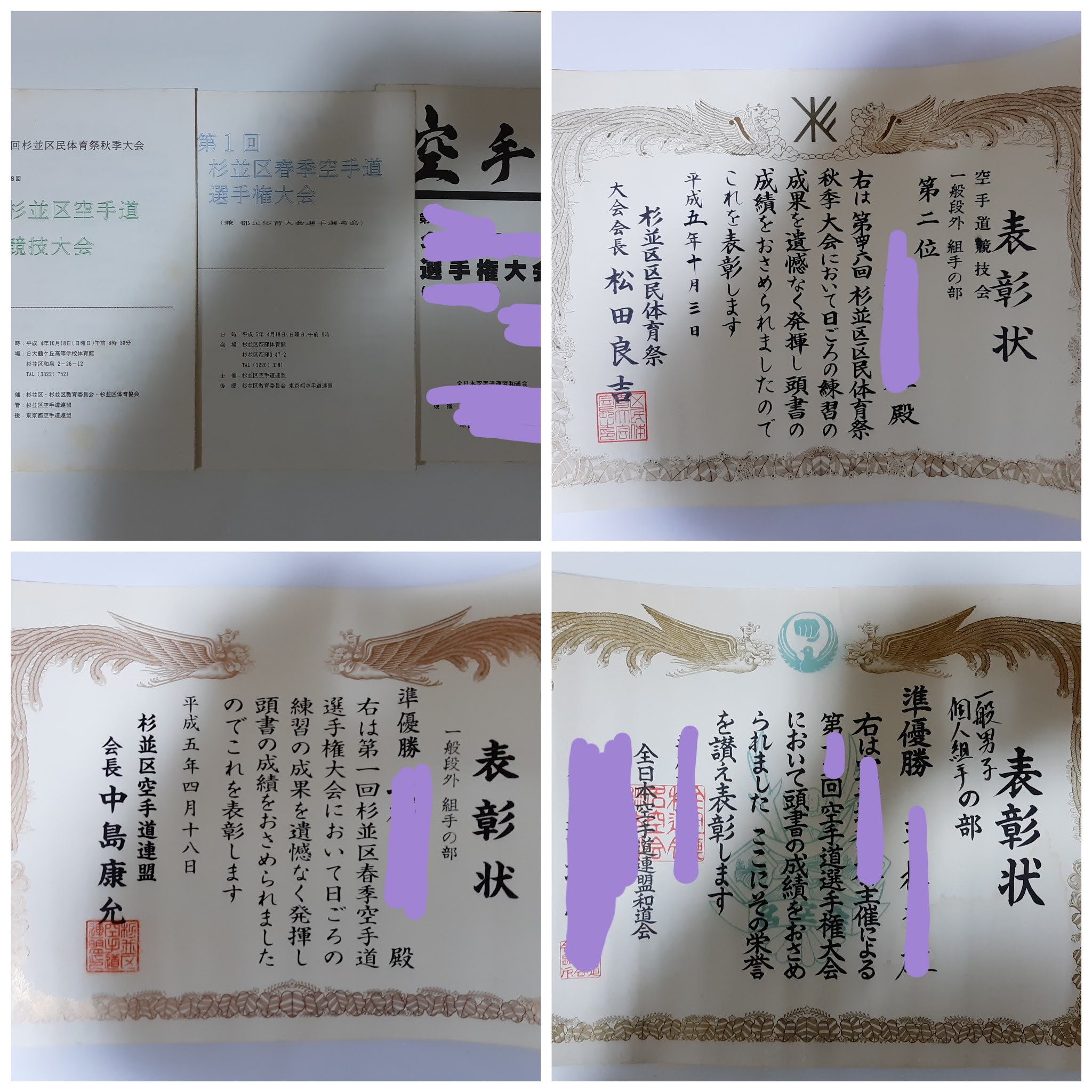 物置の整理をしたところ過去に出場した大会のパンフレットと表彰状が出てきました。