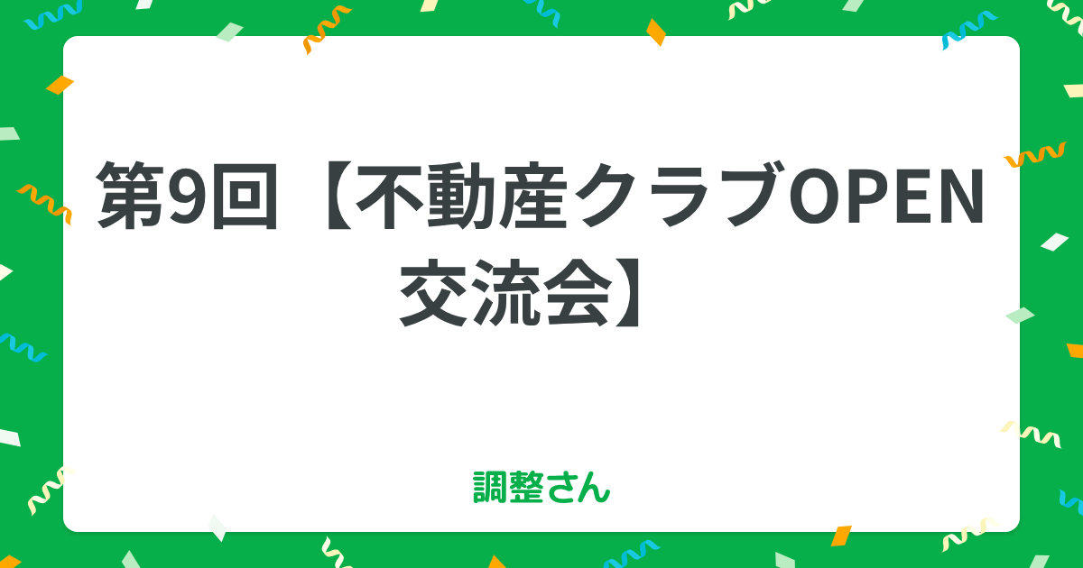 第9回【不動産クラブOPEN 交流会】 | 調整さん①日時:2025.6.26(木)12:30-13:30 ②場所:レアル会議 西新宿1丁目3−13 ZenkenPlazaⅡ7階 https://www.instabase.jp/space/1910 ③参加費1,000円 ④配布希望の資料ありましたら持参ください! ⑤名刺交換メインのフリー交流会です!(自己紹介無) ⑥交流会終了後、参加者名簿送付します!(連…chouseisan.com