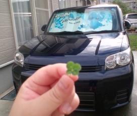 洗車後、庭で小さな4つ葉のクローバー発見!