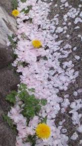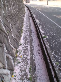 側溝は、花びらでピンク色♪