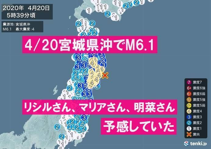 【地震】宮城県沖でM6.1~リシルさん、マリアさん、明菜さん、林湧森さんが予測していた~後続あり | 探求三昧ブログAmeba支部 by 百瀬直也(地震前兆・超常現象研究家/ライター)