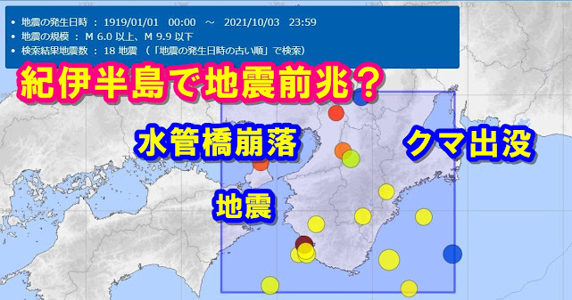 【地震前兆】10月の地震概況+和歌山県・三重県で地震に注意か?クマ出没や水管橋崩落は前兆か? | 探求三昧ブログAmeba支部 by 百瀬直也(地震前兆・超常現象研究家/ライター)