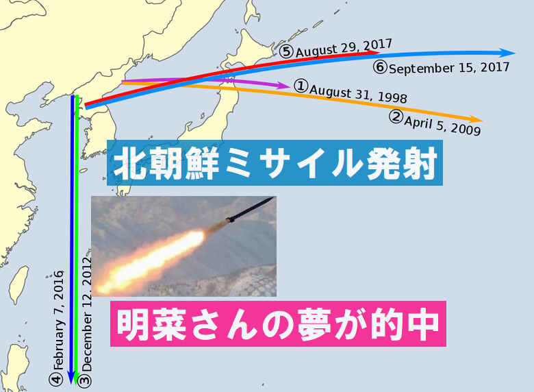 【予言】北朝鮮がミサイル発射~秋田県の明菜さんが夢予知していた!大地震と津波の夢も現実になるか? - 探求三昧(はてな支部) - 地震前兆/超常現象研究家・百瀬直也が地震・災害予知・防災・予言などを探求今日は北朝鮮が1年5カ月ぶりにミサイルを発射したが、秋田県の明菜さんが3月にこの夢を見ていたのと、岡山県の桜花さんがビジョンを見ていた。 では、先日の記事で紹介した、明菜さんが頻繁に見るという津波の夢もそう遠くないうちに現実になるだろうか?www.tankyu2.com