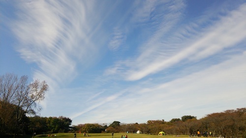 青空と雲が織り成す縞模様とのアンサンブルはこの日限り。