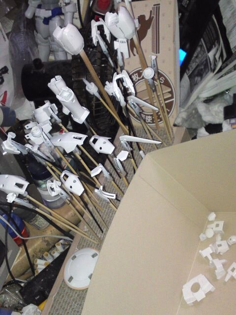 やっと白塗り終わった~持ち手棒足りなくなるくらいにパーツも塗装面積も多い割には早かった・・・かな pic.twitter.com/WZ2nGNAC