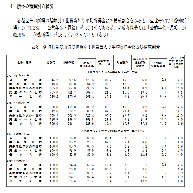【図9】所得の種類別|厚生労働省