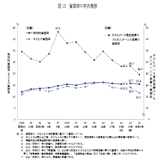 貧困率も同資料にあったため、同様に引用掲載しておく。