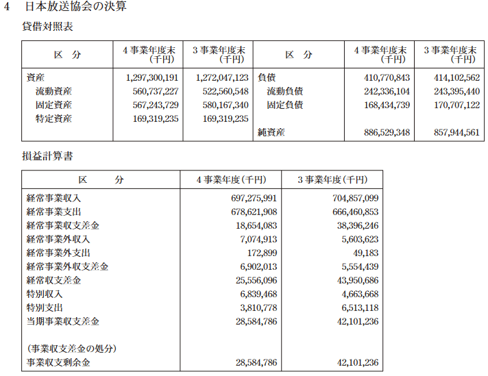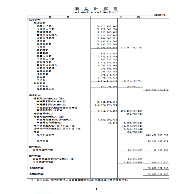 これは令和4年度の機構運営に関する財務諸表である。