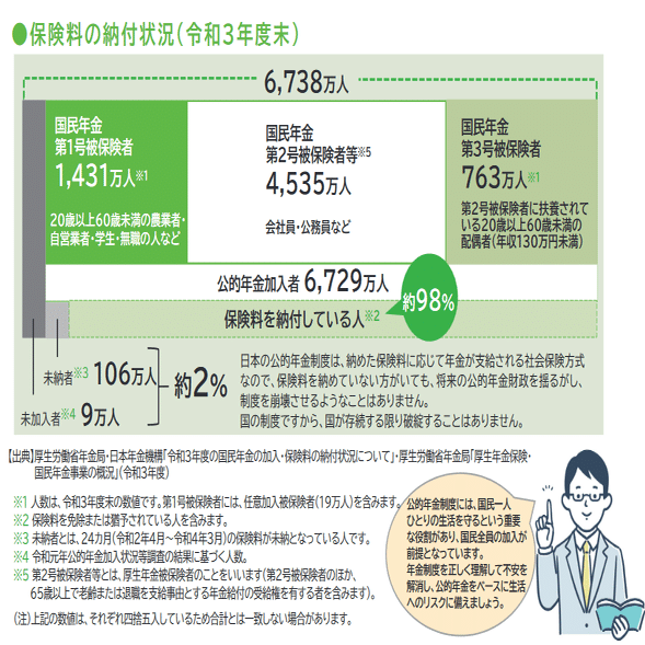 厚生年金は給料から天引きが行われ、勤務先が納付するものなので95%と比較的収納率が高い。