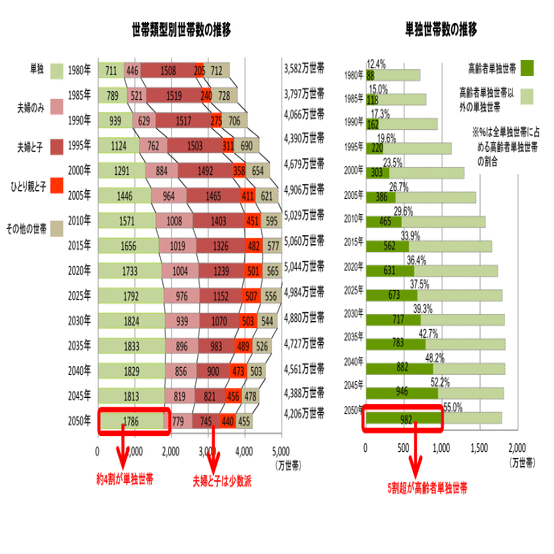 高齢者単独世帯の増加は、限界集落の増加や消滅集落の増加に伴う地方自治体単独でのインフラ維持が非常に困難になっているという問題も孕んでいる。