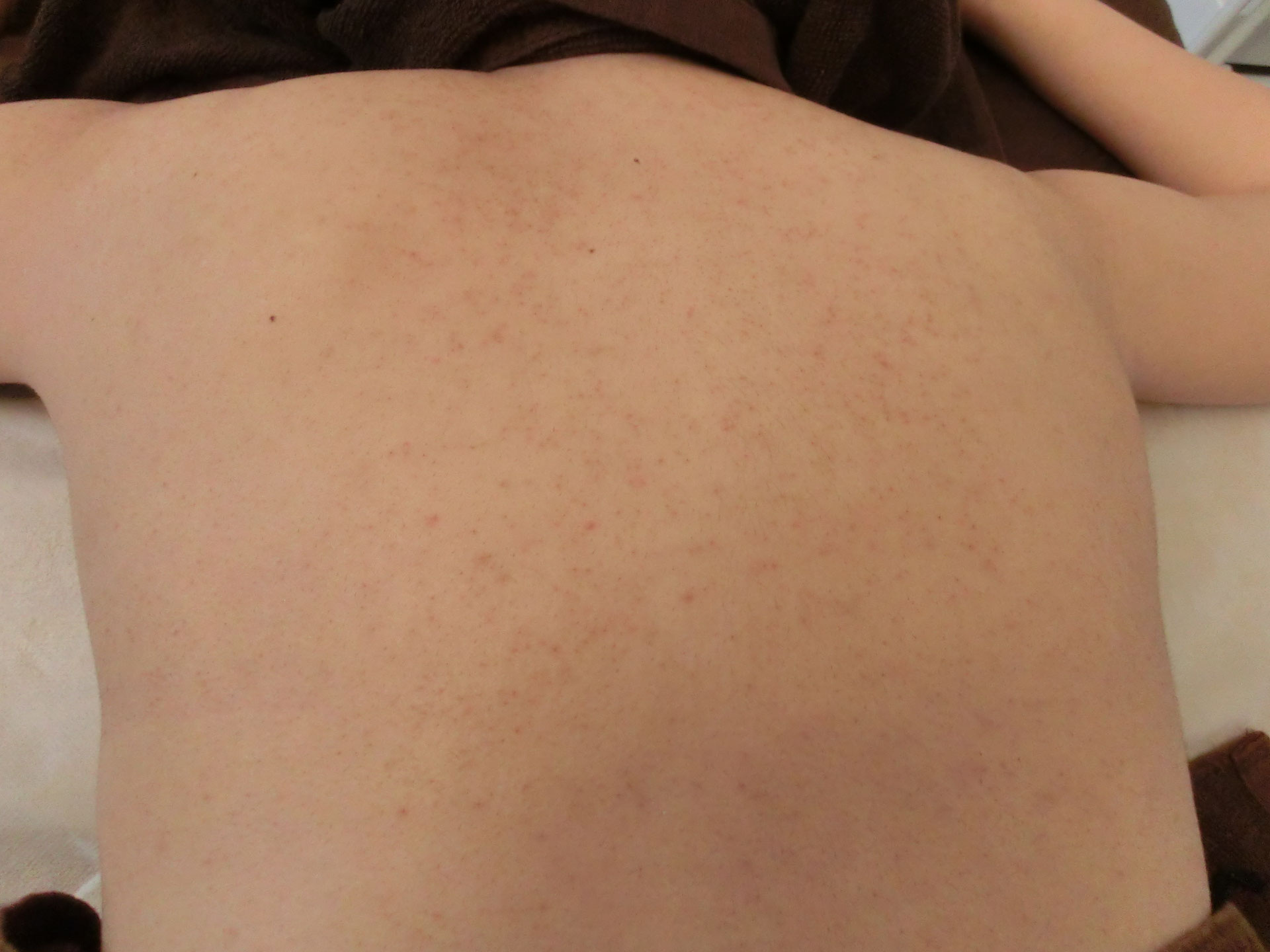 背中はほかの場所に比べて皮脂腺が多く、皮脂分泌が盛んなため、「からだニキビ」ができやすい部位ともいわれています。