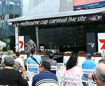 メルボルンカップが見れる大型スクリーンや、イベント会場