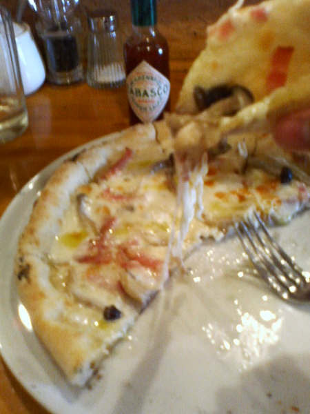 おいしいピザの写真をアップしておきました。おいしすぎて半分くらい食べちゃったところで
