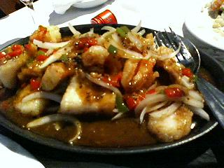 ・エビ、イカ、魚の切り身、ホタテののブラックペッパーソース