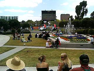 まずは、こちらのテレビでCMの度によく写る広場。大画面があり、軽食を