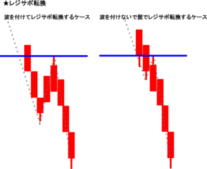 さて、このレジサポ転換ですが、現場では2種類存在するため、どちらか一方だけしかトレードしないというルールを持っていても構いません。